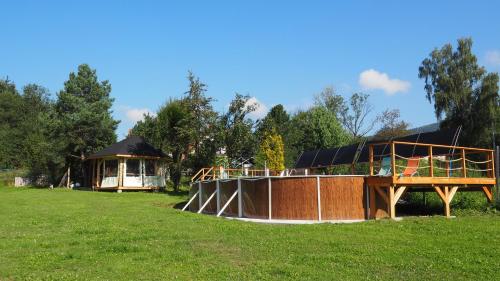 A Rabka-Zdrój, Chata w Rabce - Bajkowa Osada offre alloggi con terrazza o balcone, WiFi gratuito e TV a schermo piatto, così come una piscina all’aperto stagionale e un giardino. C’è un parcheggio privato disponibile sul posto.
