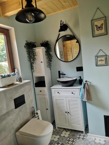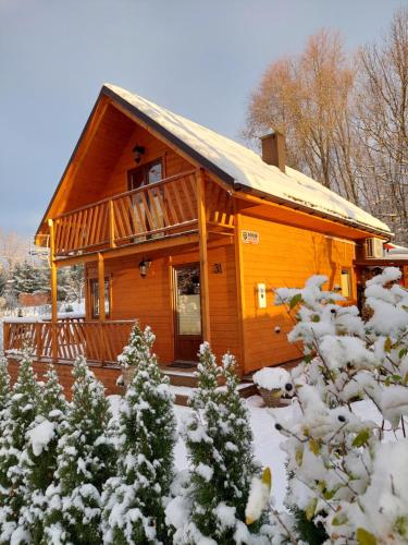 Con vista sul giardino, Domek nad jeziorem prevede un alloggio dotato di attrezzature da barbecue e balcone, a circa 36 km da Historic Karstadt. La struttura presenta un giardino, una terrazza, la vista sul lago e il WiFi gratuito in tutta la struttura.