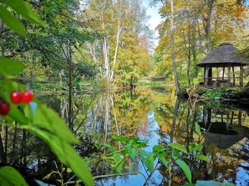 Każdy pokój dysponuje tarasem z kokonem oraz łazienką z prysznicem i suszarką do włosów. Z pokoi roztacza się widok na rzekę i zielony ogród.