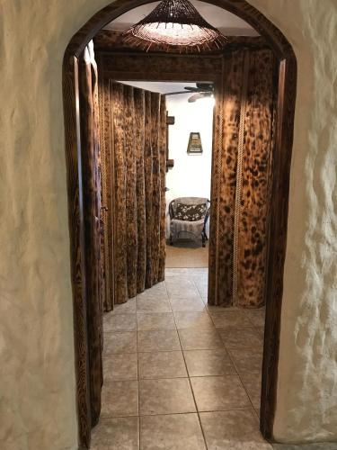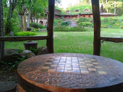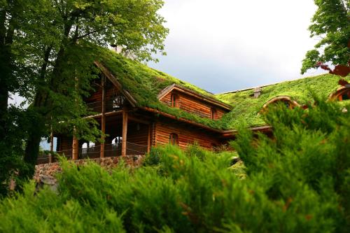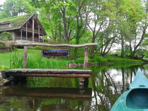 Kraina Alkos - Adults Only (18+)" położony jest nad rzeką Krutynią, w otoczeniu zieleni i ciszy przerywanej śpiewem ptaków, cykaniem świerszczy i szumem nurtu rzeki. Oferuje pokoje stworzone i udekorowane naturalnymi materiałami - kamieniem, gliną, trzciną, wikliną i drewnem z powalonych przez wiatr drzew.