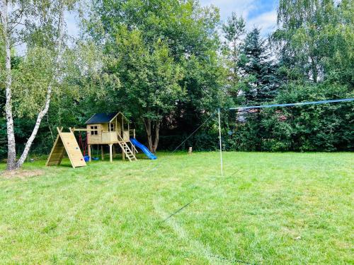 Domek pod Dębem mette a disposizione un alloggio con giardino, terrazza e attrezzature per sport acquatici a Szymonowo e dispone di WiFi gratuito e vista sul giardino. La villa dispone di parcheggio privato gratuito e si trova in una zona dove potrete praticare l’escursionismo e la pesca.
