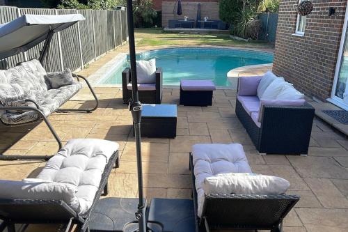 Hampton Oasis with Heated Pool & Large Garden mette a disposizione un alloggio con piscina all’aperto, giardino e terrazza a Molesey e dispone di WiFi gratuito e vista sulla piscina. Questa struttura offre una piscina privata e il parcheggio privato gratuito.