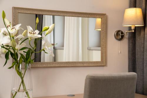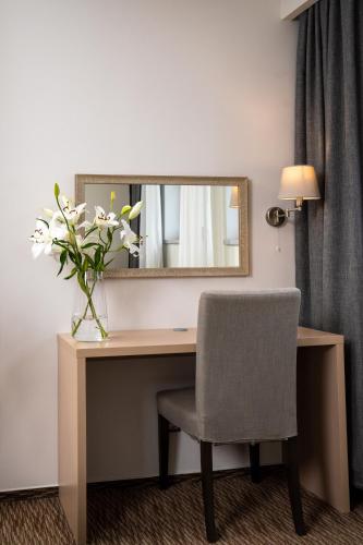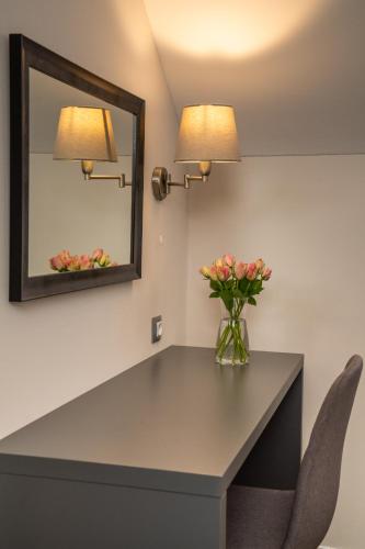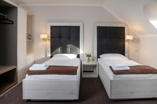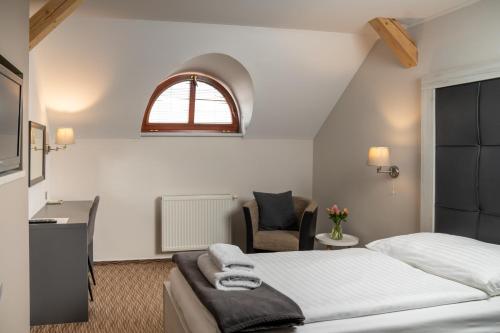Tutte le camere sono dotate di frigorifero, TV satellitare, scrivania, area salotto e bagno privato con doccia. Tutte le sistemazioni sono climatizzate e alcune vantano una vista sul frutteto dell'hotel e sulla città di Mladá Boleslav.