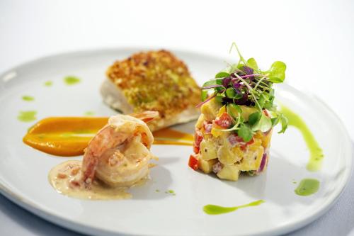 Il ristorante principale del resort, il Kai Manje, è aperto tutto il giorno e prepara cucina europea e creola, compresi piatti vegetariani. Il bar-ristorante sulla spiaggia Ti Manje serve panini e insalate a pranzo, mentre la cantina del Ti Kave vi invita a scoprire il suo ricco assortimento di vini.
