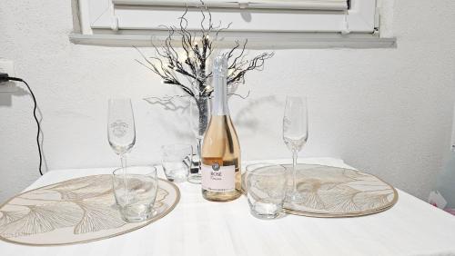 Questo appartamento con aria condizionata comprende 1 camera da letto, un soggiorno, una cucina con utensili, frigorifero e macchina da caffè, e 1 bagno con doccia e set di cortesia. Presso questo appartamento troverete asciugamani e lenzuola in dotazione.