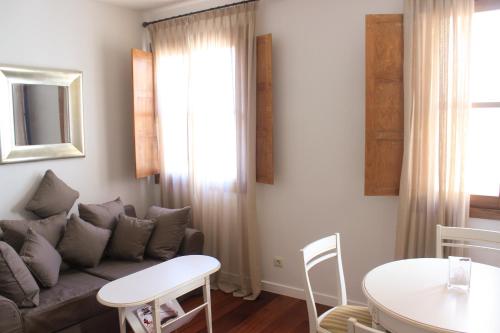 Le spaziose suite dell'Hotel Casa Urbana Suites presentano arredi eleganti con elementi originali. Il soggiorno include un divano e una TV a schermo piatto. La connessione Wi-Fi è gratuita.