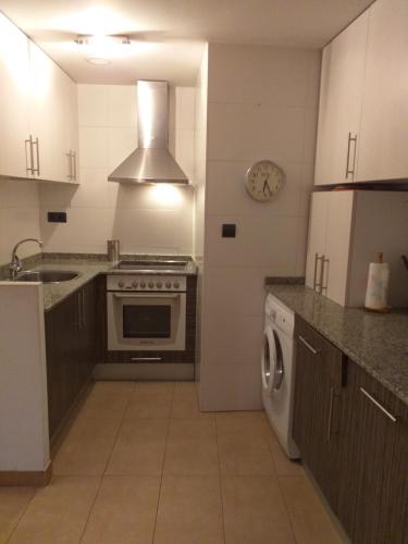 Questo appartamento dispone di 2 camere da letto, 1 bagno, lenzuola, asciugamani, una TV a schermo piatto, una zona pranzo, una cucina con utensili e un patio con vista sulla città.