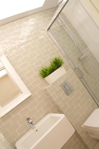 Questo appartamento comprende 2 camere da letto, 3 bagni e un soggiorno.