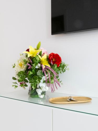 Questo appartamento si trova al piano terra e ha 1 camera da letto, una TV a schermo piatto e una cucina con utensili, frigorifero e lavastoviglie, una lavatrice, forno e microonde. Presso questo appartamento troverete asciugamani e lenzuola tra i servizi offerti.