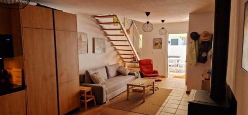 Questa casa vacanze con aria condizionata comprende 3 camere da letto, un soggiorno, un angolo cottura con utensili e 2 bagni. A disposizione troverete una TV a schermo piatto.