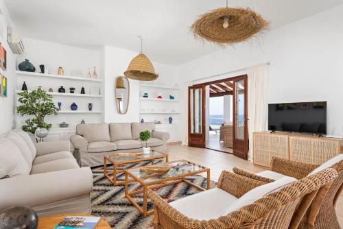 Questa villa dispone di 4 camere da letto, 2 bagni, lenzuola, asciugamani, una TV con canali satellitari, una cucina con utensili e una terrazza con la vista sul mare.