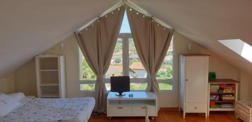 Questa casa vacanze prevede 4 camere da letto, 1 bagno, lenzuola, asciugamani, una TV a schermo piatto, una zona pranzo, una cucina con utensili e una terrazza con vista sulla montagna.