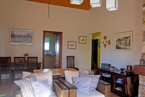The holiday home with a terrace and garden views features 3 bedrooms, a living room, a flat-screen TV, an equipped kitchen with a dishwasher and an oven, and 2 bathrooms with a bidet. Towels and bed linen are featured in the holiday home. There is also a seating area and a fireplace.