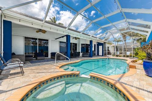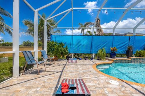 Alloggio posizionato a Cape Coral, a 42 km da Fishermen's Village e 34 km da Sanibel & Captiva Islands Chamber of Commerce, Heated Pool, Cornhole, Dart Board, Sleeps 8! - Villa Lerato offre una sistemazione con WiFi gratuito, aria condizionata, piscina all’aperto e terrazza. Questo alloggio con vista sulla piscina mette a disposizione un patio.