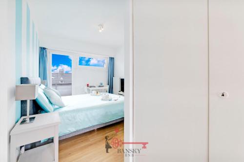 Questo appartamento comprende 1 camera da letto, 1 bagno, lenzuola, asciugamani, una TV a schermo piatto, un angolo cottura con utensili e un balcone con la vista sulla città.