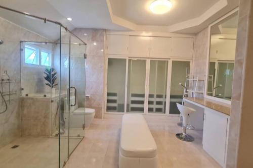 Thai Modern Villa with Salt Pool & Greenery Garden mette a disposizione un alloggio a Ban Nong Khrai Luang dotato di WiFi gratuito e vista sul giardino, più piscina all’aperto e terrazza. Questa villa offre piscina privata, giardino e parcheggio privato gratuito.