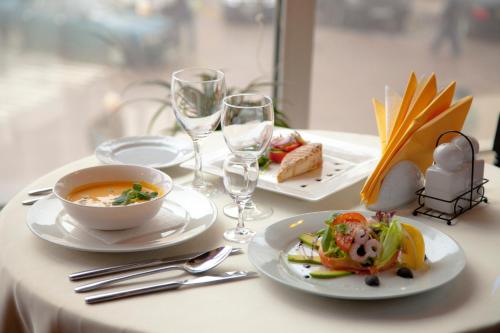 Al ristorante gusterete una gamma di piatti ucraini ed europei, e al bar siete invitati a provare gli aperitivi e altri alcolici, mentre la caffetteria vi delizierà con prodotti da forno freschi e bevande calde.