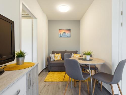 Questo appartamento con aria condizionata comprende 1 camera da letto, un soggiorno, una cucina con utensili, frigorifero e macchina da caffè, e 1 bagno con doccia. Tra i servizi disponibili troverete una TV con canali via cavo.