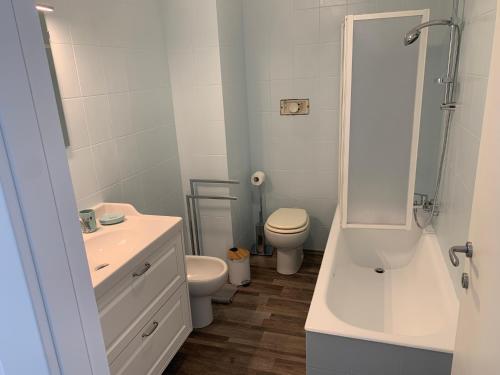 The spacious apartment with a terrace and sea views features 2 bedrooms, a living room, a flat-screen TV, an equipped kitchen with an oven and a microwave, and 2 bathrooms with a bidet. Towels and bed linen are provided in the apartment. The property offers garden views.