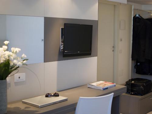 Rooms have a modern design with neutral colours and wooden floors. They are air conditioned and also have a minibar. The flat-screen TV has Sky channels.