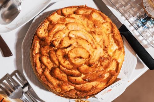 A selection of options including fresh pastries, fruits and juice is served for the Italian breakfast.