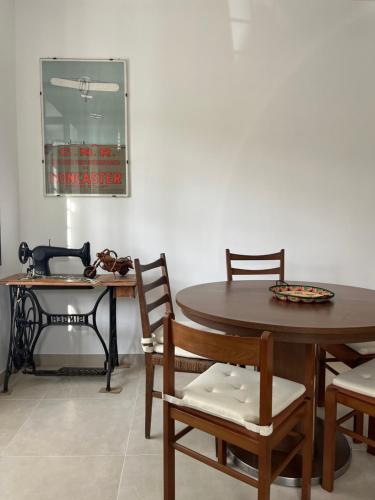 The apartment is equipped with 2 bedrooms, 1 bathroom, bed linen, towels, a flat-screen TV with streaming services, a dining area, a fully equipped kitchen, and a terrace with garden views. Guests can enjoy a meal on an outdoor dining area while overlooking the quiet street views.