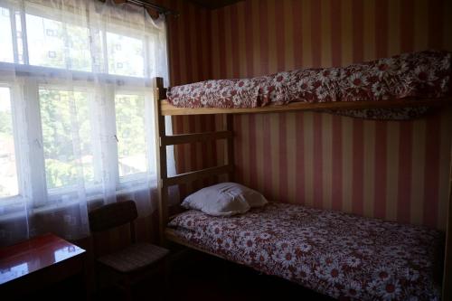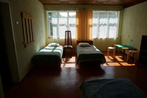Guest rooms at the hostel are equipped with a shared bathroom and bed linen.