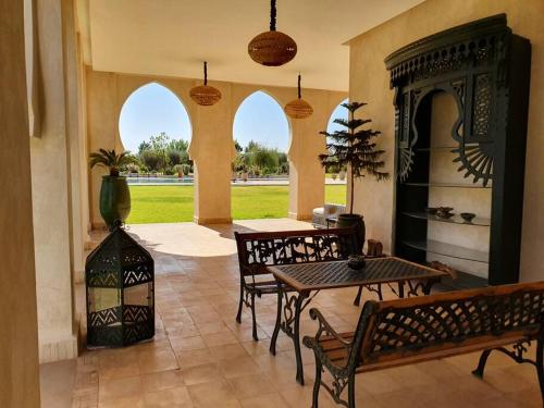 Boasting air-conditioned accommodation with a private pool, garden view and a balcony, Dar Lalla Mhalla Villa 975m2 5ch - Rt de Fes is situated in Marrakech. This property offers access to a terrace, free private parking and free WiFi. The property is non-smoking and is set 19 km from Bahia Palace.