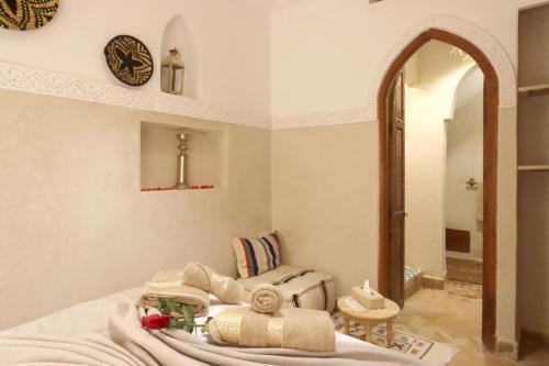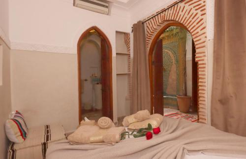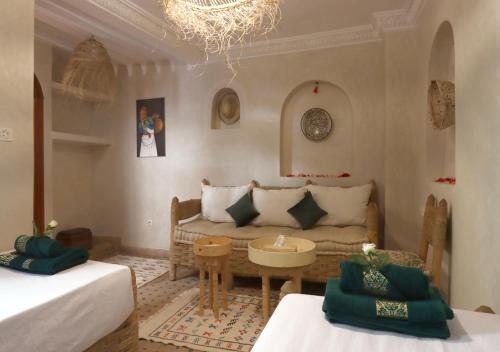 Located in Marrakech Medina, a 5-minute walk from Jamaâ El-Fna Square, this riad features a flowered patio, free Wi-Fi and a terrace with a dining area. You can enjoy the sunset on the panoramic terrace.