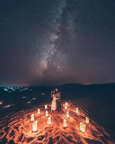 Set in Mhamid, Mhamid Regency Camp offers accommodation with seating area. This luxury tent provides pool with a view, an indoor pool, as well as a garden. All rooms come with a terrace with mountain views and free WiFi.