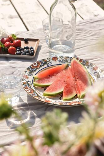 There is a seating area, a dining area and a kitchen complete with a fridge, a stovetop and kitchenware. The property has an outdoor dining area.
