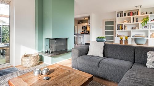 The spacious holiday home with a terrace and garden views features 3 bedrooms, a living room, a flat-screen TV, an equipped kitchen with a dishwasher and an oven, and 2 bathrooms with a walk-in shower. Towels and bed linen are featured in the holiday home. There is also a seating area and a fireplace.