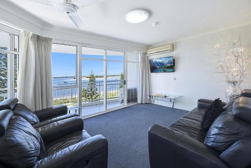 Atrium Waterfront Resort har praktfull utsikt over det glitrende Broadwater, og ligger perfekt til i den roligere nordlige enden av Gold Coast. Under oppholdet på denne fantastiske ferieboligen på Gold Coast har du muligheten til å se etter den sky dugongen, fange krabber, bygge sandslott, bade, spasere eller sykle langs veiene som strekker seg flere kilometer i begge retninger, sjekke ut nærliggende Harbour Town Premium Outlet Shopping, det nyåpnede spisestedet Eat Street eller Gold Class Cinemas.