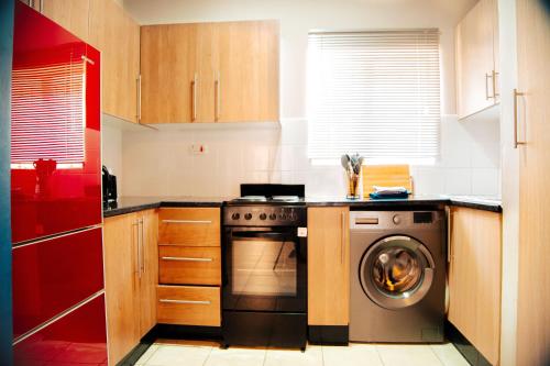 R&R Stays har 2 soverom, et kjøkken med kjøleskap og stekeovn, vaskemaskin og 1 bad.