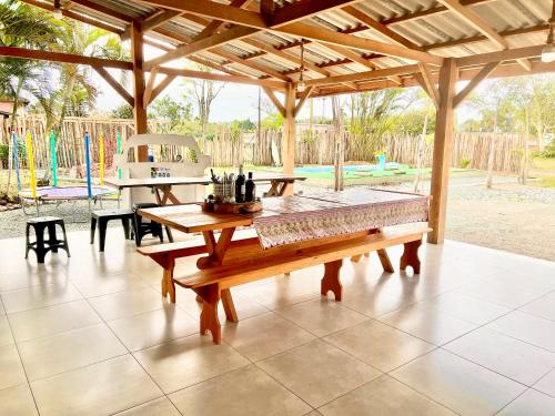 Suítes Recanto Monte Trigo com Piscina ligger i São Francisco do Sul i Santa Catarina, med Joinville Arena bare 48 kilometer unna. Dette overnattingsstedet har gratis WiFi, lekeplass, en hage og gratis privat parkering.