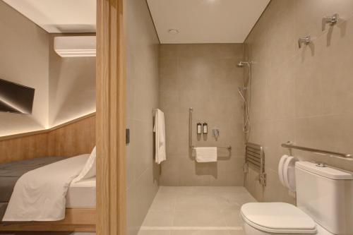 Boenhetene på Fast Sleep Suites by Slaviero Hoteis - Hotel dentro do Aeroporto de Guarulhos - Terminal 2 - desembarque oeste har TV (flatskjerm). Rommene på overnattingsstedet har klimaanlegg og skrivebord.
