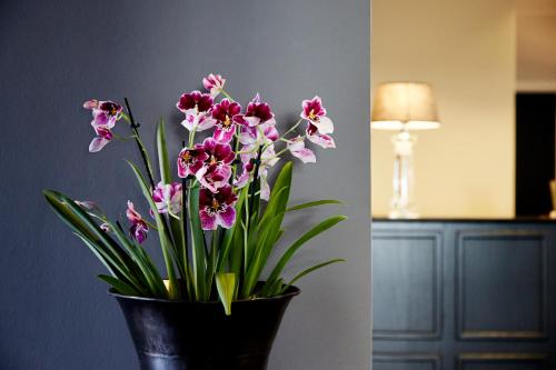 Hotellet serverer en stor skandinavisk frokostbuffé bestående av varme og kalde retter hver morgen. Om kvelden får du kaffe og andre drikkevarer i baren. Om sommeren kan du slappe av i gårdsrommet.