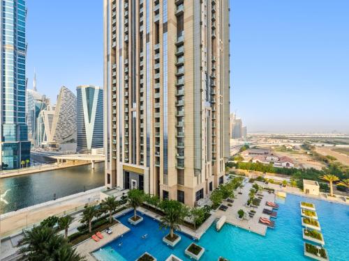 Modern Apartment With Partial Canal and Pool View ligger, 6 kilometer unna Dubai Mall kjøpesenter, og tilbyr overnatting med utendørsbasseng og gratis WiFi. Overnattingsstedet ligger 5,2 kilometer fra Burj Khalifa og har et treningsstudio og gratis privat parkering.