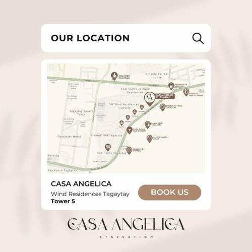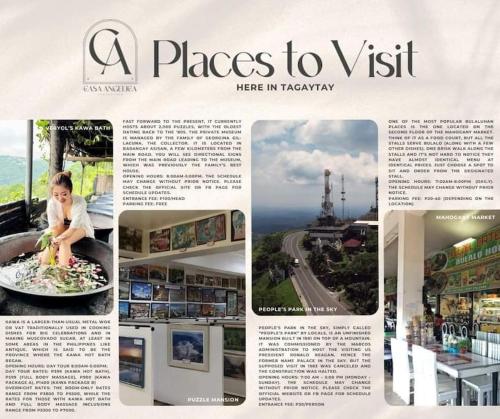 Casa Angelica ligger i Tagaytay, 7,4 kilometer fra Picnic Grove, og har overnatting med en hage, gratis WiFi, en døgnåpen resepsjon og en minibank. Privat parkering finnes på overnattingsstedet.