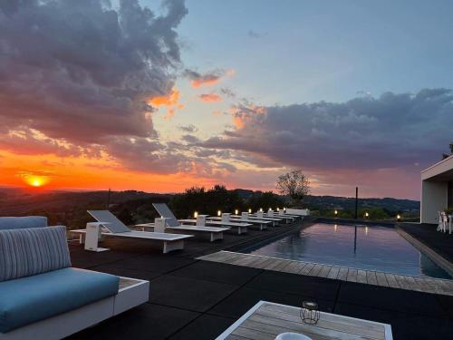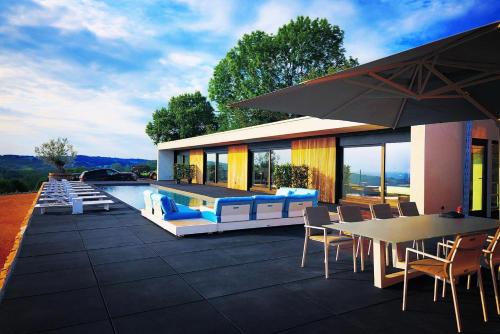 Maison Papillon France ligger i Cahus og har basseng, en hage, en fellesstue og gratis WiFi i tillegg til boenheter med utsikt over fjellet.