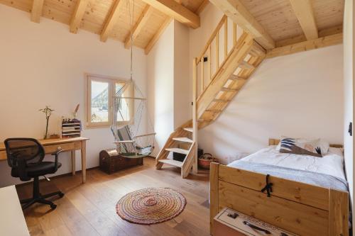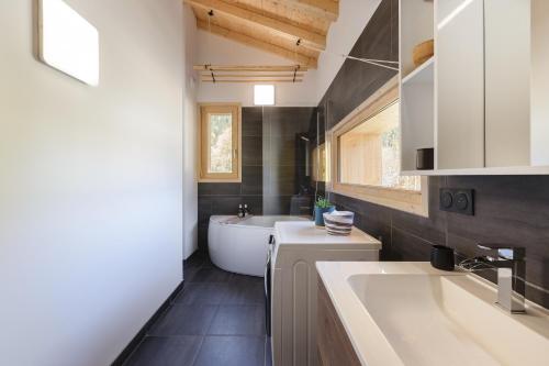 Denne hytta har terrasse med utsikt mot fjellet og har også TV (flatskjerm), et velutstyrt kjøkken med et kjøleskap, en oppvaskmaskin og en stekeovn, så vel som 2 bad med dusj og hårføner.
