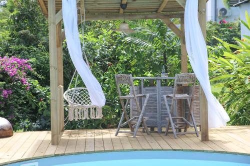 L Orchidée Bleue, bas de villa, vue mer, piscine privée ligger i Sainte-Anne og har privat basseng og utsikt over bassenget. Overnattingsstedet ligger 2,1 kilometer fra Sainte Anne-stranden og har gratis WiFi, og privat parkering finnes på overnattingsstedet i tillegg til klimaanlegg.