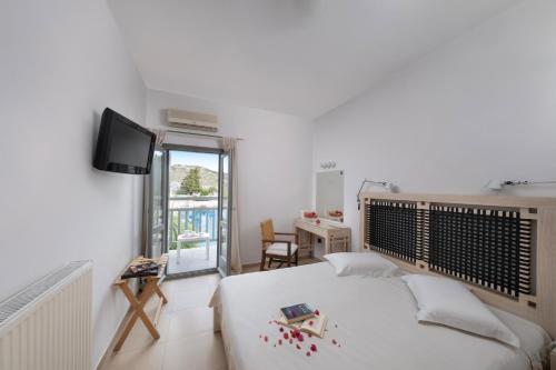 På overnattingsstedet er det en restaurant som serverer greske retter, mat fra Middelhavslandene og sjømat, med muligheter for vegetarisk og glutenfri mat i tillegg.