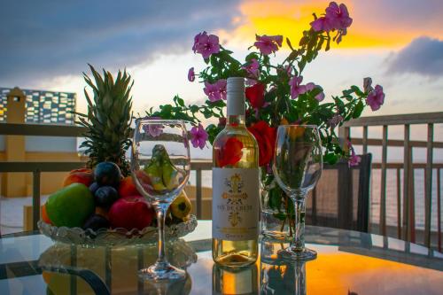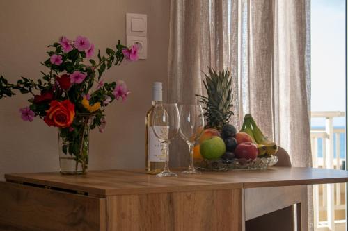 Dette feriehuset har utsikt mot byen og sjøen og har 1 soverom og balkong. Dette feriehuset med klimaanlegg består av stue, kjøkken som er utstyrt med kjøleskap og kaffemaskin, og 1 bad med dusj og gratis badeprodukter.