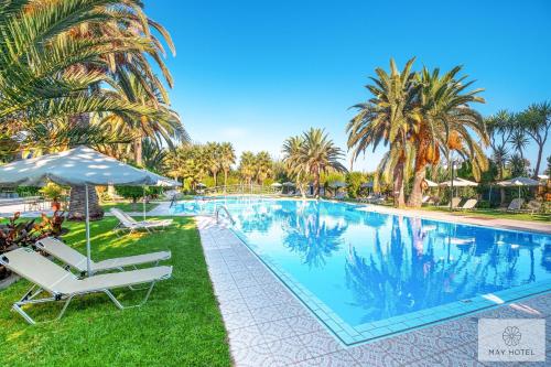 I Rethymno by, 8 minutters gange fra Rethymno-stranden, ligger May Beach Hotel, som har et sesongåpent utendørsbasseng, gratis privat parkering, en hage og en fellesstue. Forskjellige fasiliteter tilbys her, blant annet en terrasse, en restaurant og en bar. Overnattingsstedet har en døgnåpen resepsjon og tilbyr flyplasstransport, romservice og gratis WiFi over hele overnattingsstedet.
