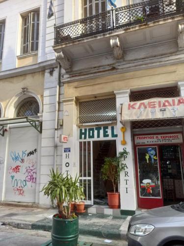 Sparti har en praktisk beliggenhet i Pireus, og har en fellesstue, gratis WiFi og en terrasse. Dette 1-stjernes hotellet har et felleskjøkken og romservice. Noen av boenhetene på overnattingsstedet har uteplass med sjøutsikt.