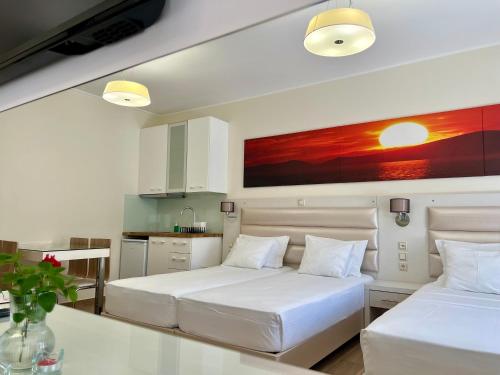 På Valentinos House bor du på rom med klimaanlegg, klesskap, vannkoker, et kjøleskap, kokeplater, safe, TV (flatskjerm), balkong og eget bad med dusj. På overnattingsstedet er alle rommene utrustet med sengetøy og håndklær.