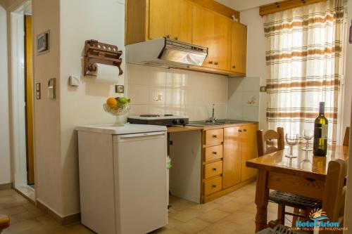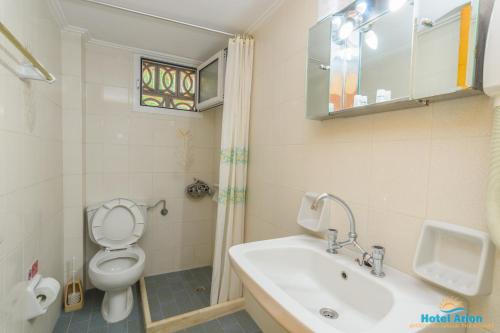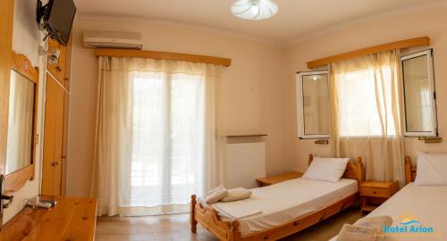 På Hotel Arion har hvert rom klimaanlegg, klesskap, terrasse med utsikt over byen, eget bad, TV (flatskjerm), sengetøy og håndklær. Rommene har et kjøleskap.