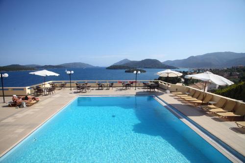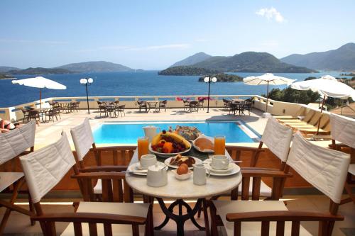 I Nydrí, 5 minutters gange fra Pasas strand, ligger Hotel Scorpios, som har en hage, gratis privat parkering, en terrasse og en restaurant. Dette 2-stjerners hotellet har en bar i tillegg til rom med klimaanlegg, gratis WiFi og eget bad. Fra rommet ditt har du utsikt over bassenget.
