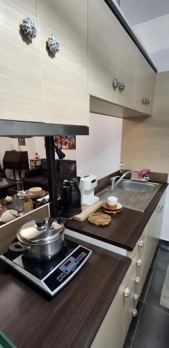 Minikjøkkenet har et kjøleskap, kokeplater og en brødrister, og du har dessuten tilgang til dusj, gratis badeprodukter og hårføner.